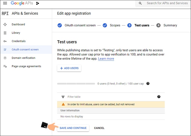 5. سپس روی دکمه «SAVE AND CONTINUE » که در انتهای صفحه قرار داره کلیک کنید. در صفحه بعدی به دسترسی های امنیتی اشاره می شود که با کلیک روی دکمه ذخیره سازی انتهای صفحه می توانید از آن گذر نمایید.